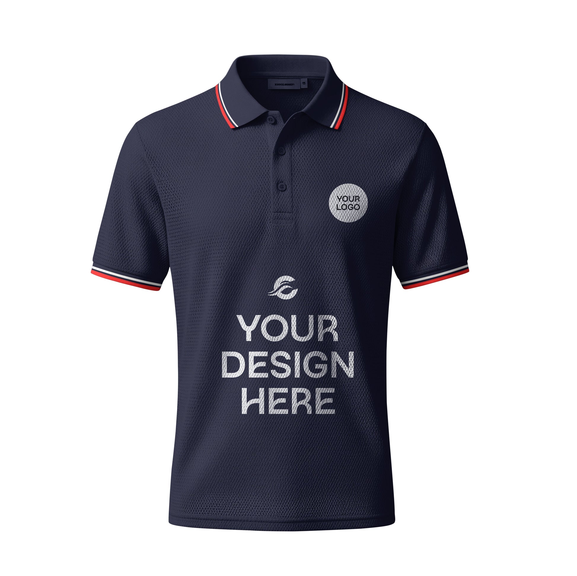 তোমার টিম, ব্র্যান্ড বা ইভেন্টের জন্য তৈরি করো একদম ইউনিক লুক এই 170 GSM মানের নেভি ব্লু মেশ পোলো টি-শার্ট দিয়ে। উন্নত মানের breathable mesh fabric, রেড-হোয়াইট-ব্লু ট্রিমযুক্ত কলার ও হাতার ডিজাইন, এবং ক্লাসিক তিন বোতামের প্ল্যাকেট—সব মিলিয়ে এটি একটি স্মার্ট, আরামদায়ক ও কাস্টমাইজযোগ্য পোশাক।