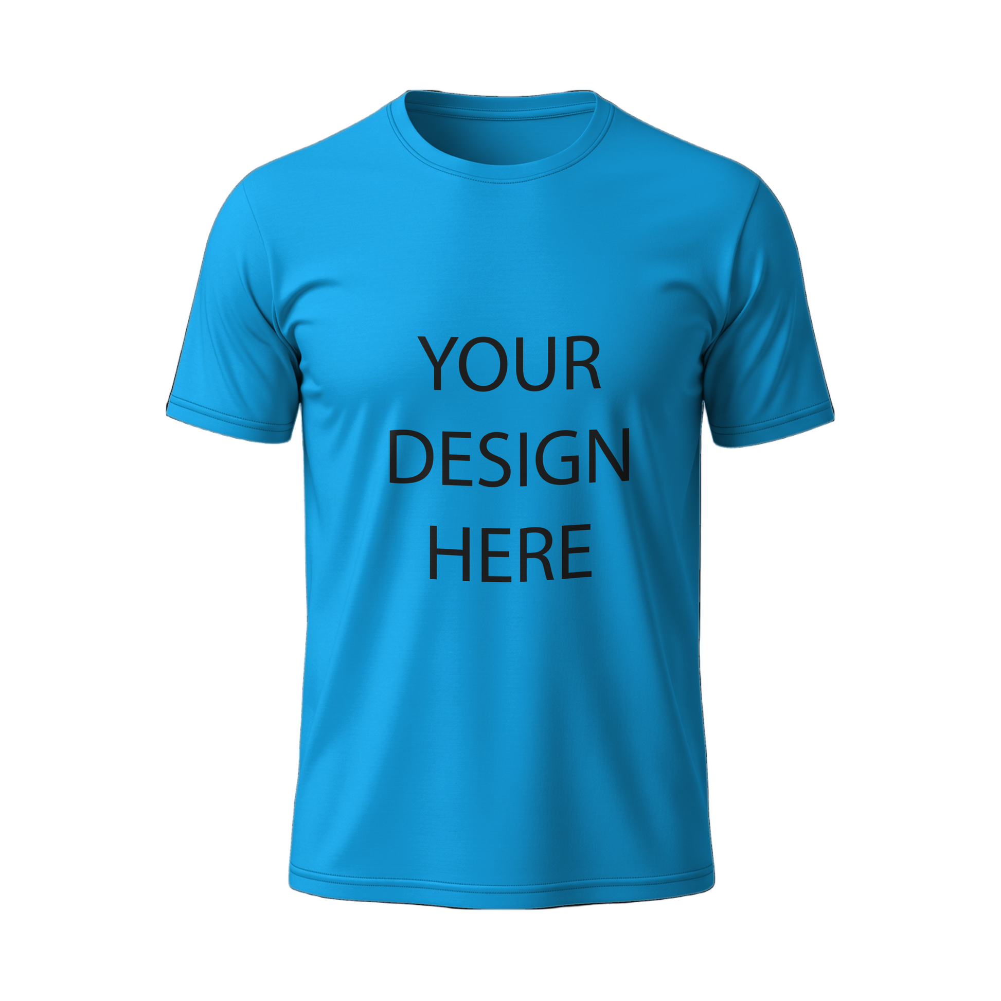 লাইট ব্লু রঙের ১৪০ GSM প্রিমিয়াম কোয়ালিটি জার্সি ফেব্রিক কাস্টম টি-শার্ট – নাম, লোগো, ছবি সহ ডিজাইন করুন